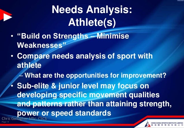 The€aim€of€this€article€therefore,€is€to€rationalise€the€use€of€Strength€and Conditioning€(S&C) coach€must€first€undergo€a€needs€analysis€to€identify€the€biomechanical€and ... Read Full Source